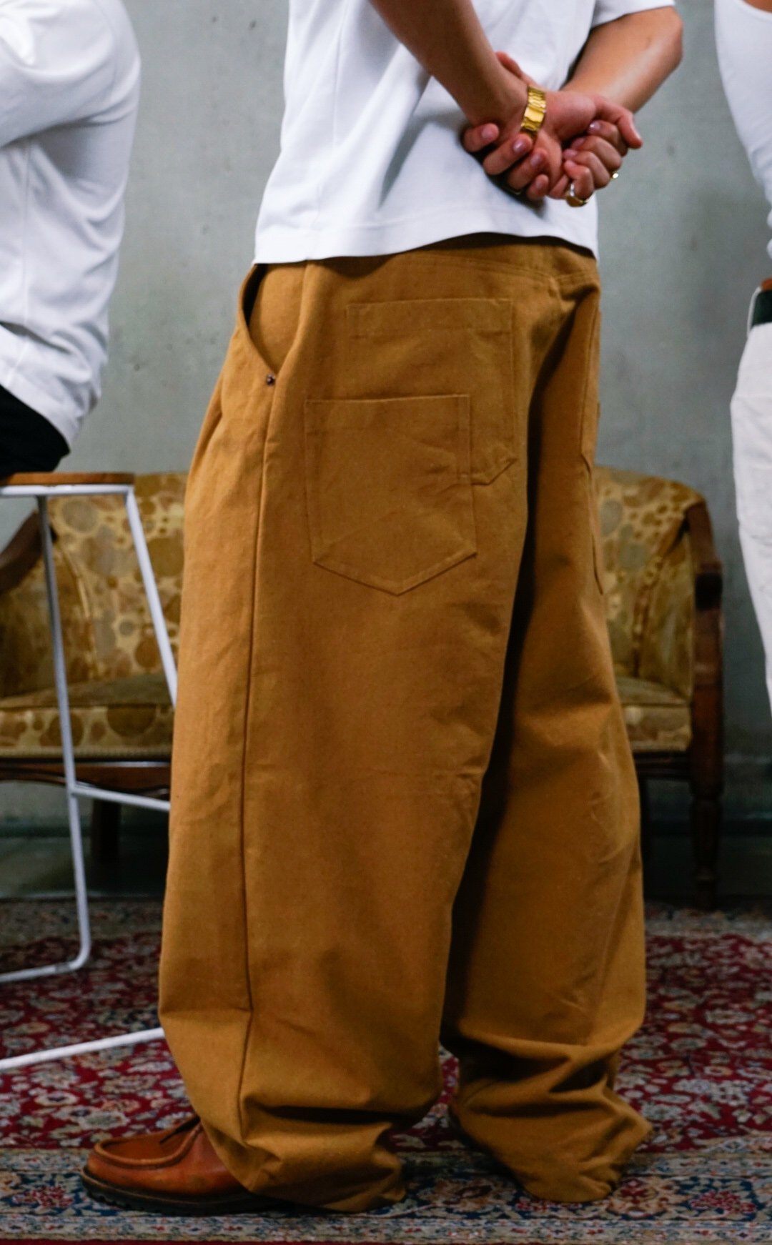 - Oversized, wide leg fit